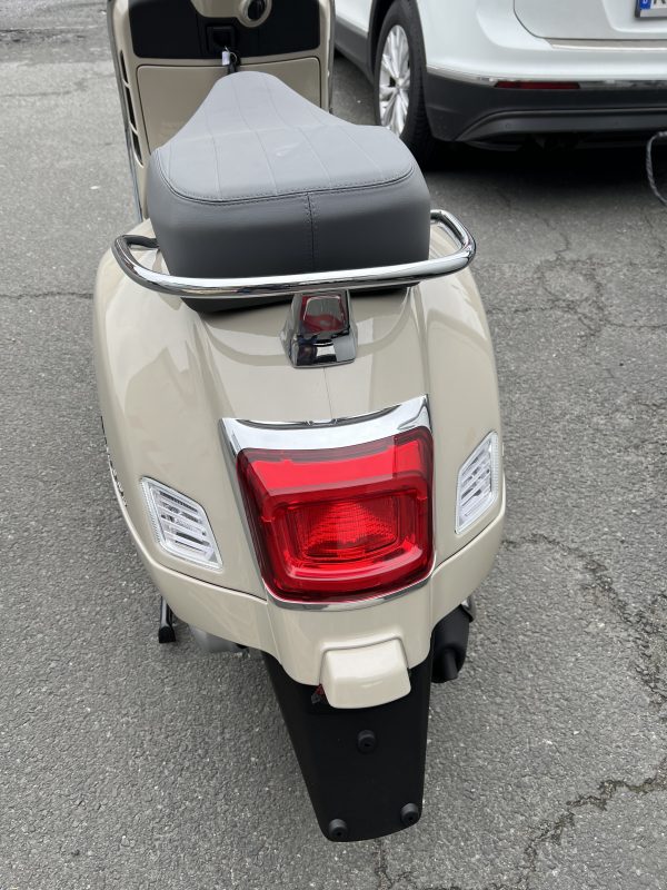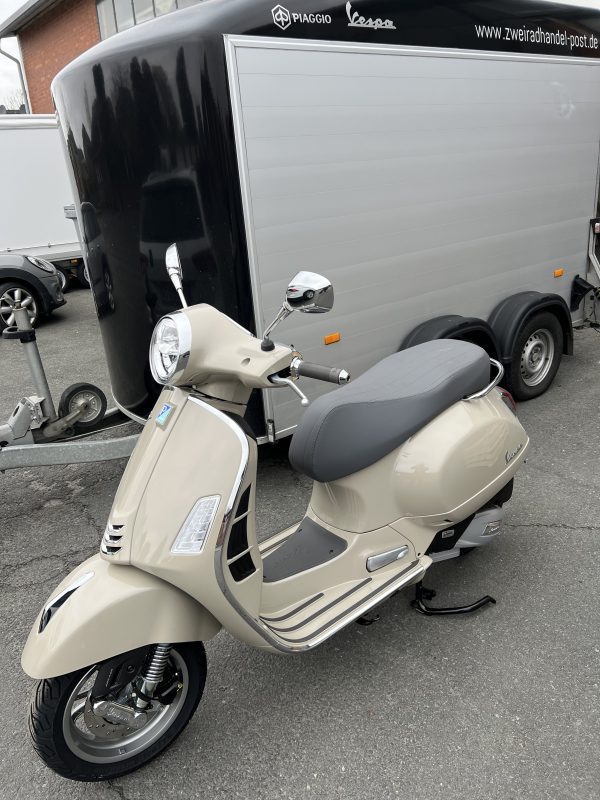 Die neue GTS 310ie HPE ABS/ASR (abschaltbar) vereint Bewährtes mit Neuem: großes Granturismo-Chassis aus hochwertigem Stahl, 12″ Alufelgen, Euro 5+ konformer Einspritzmotor, der 25PS leistet. Dazu ein neuer analog-digitale Tacho, eine bequeme Sitzbank, ausgestattet mit kompletter LED Lichttechnik , serienmäßigem ABS/ASR, USB-Port im Handschuhfach und Vorbereitung für die Vespa Multimedia Plattform-App, geschlitzte Seitenbacke hinten rechts, neuem Deko Design,