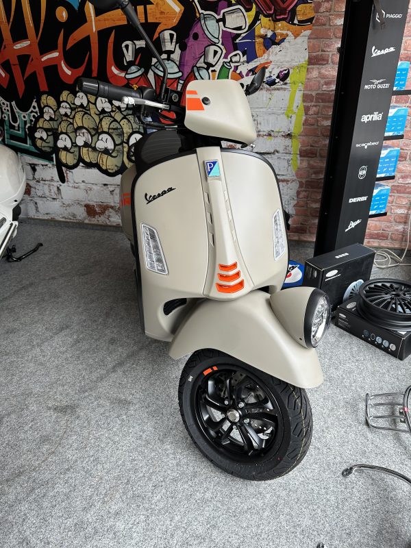 Die neue GTV 310ie Super HPE ABS/ASR (abschaltbar) vereint Bewährtes mit Neuem: komplette LED Lichttechnik , großes Granturismo-Chassis aus hochwertigem Stahl, 12″ Alufelgen, Euro 5+ konformer Einspritzmotor, der nun knapp 25 PS leistet. Dazu der neue, hinterleuchtete analog-digitale Tacho, eine bequeme Sitzbank, ausgestattet mit LED Tagfahrlicht, serienmäßigem ABS/ASR, USB-Port im Handschuhfach und Vorbereitung für die Vespa Multimedia Plattform-App, geschlitzte Seitenbacke hinten rechts, roter Stoßdämpfer & schwarze Felgen vorne, Keyless Go, Keyfinder und Fernbedienung für die Sitzbank runden das Paket ab.